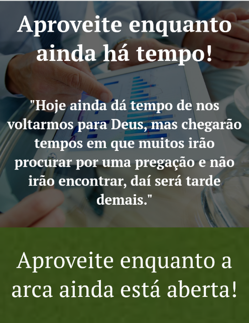 O certo é aproveitarmos que ainda existe tempo de prestarmos culto ao Criador, pois dias virão em que muitos irão querer achar alguém que lhes fade de Jesus e não encontrarão. Boa coisa é valorizarmos a Bíblia, porque ela é remédio para a nossa alma, visto que ela alegra o nosso coração (Provérbios 17.22).